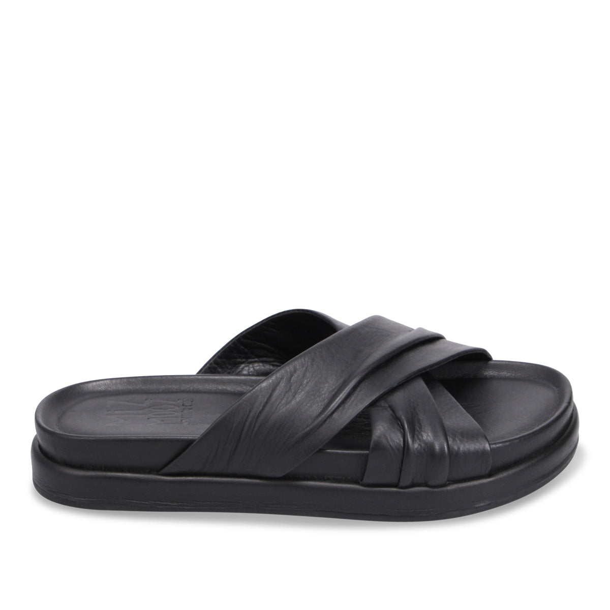 Sleek, stylish, and effortlessly cool—these monochrome black slides are your ultimate go-to for casual sophistication. Featuring crisscross leather straps and a cushioned sole, they combine comfort with understated elegance. Talisa is perfect for minimalist looks or pairing with bold outfits, these slides are a versatile addition to any wardrobe. Keep it chic in monochrome.